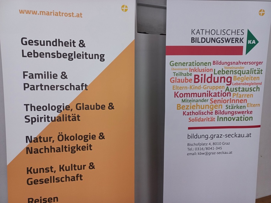 Durch den tiefsinnigen Vortrags- und Gesprächsabend führte die langjährige ehemalige Referentin des Bildungshauses Mariatrost, Ingrid Zechner, die Initiatorin dieser Veranstaltung. Kathrin Karloff, die Leiterin der Nachfolgeinstitution Bildungsforum Mariatrost, würdigte Ingrid Zechner für ihr mehr als 35-jähriges Wirken in der Erwachsenenbildung. Die Eröffnungsworte sprach Walter Prügger, Leiter des diözesanen Ressorts Bildung, Kunst & Kultur und des Bischöflichen Amtes für Schule und Bildung.